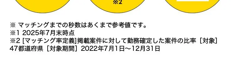 ※2 [マッチング率定義]掲載案件に対して勤務確定した案件の比率 [対象]