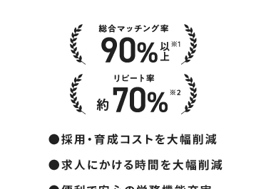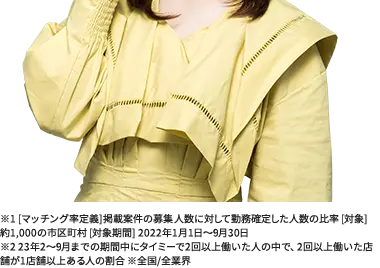 ※1 [マッチング率定義] 掲載案件の募集人数に対して勤務確定した人数の比率 [対象]
