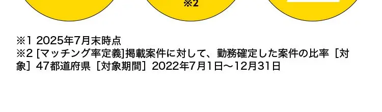 ※2 [マッチング率定義] 掲載案件に対して、 勤務確定した案件の比率 [対